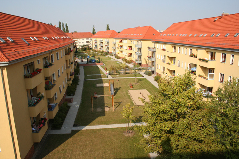 In der grünen Wohnanlage befindet sich ein ruhiger Innenhof mit Spiel- und Grillplatz.