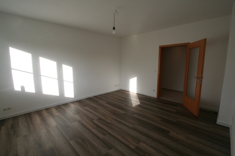 Die Wohnung selber ist vollständig renoviert und bietet neben den modernen Bodenbelegen in Wohn- und Schlafzimmer, Fliesen in Bad, Flur und Küche.
